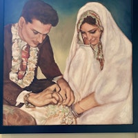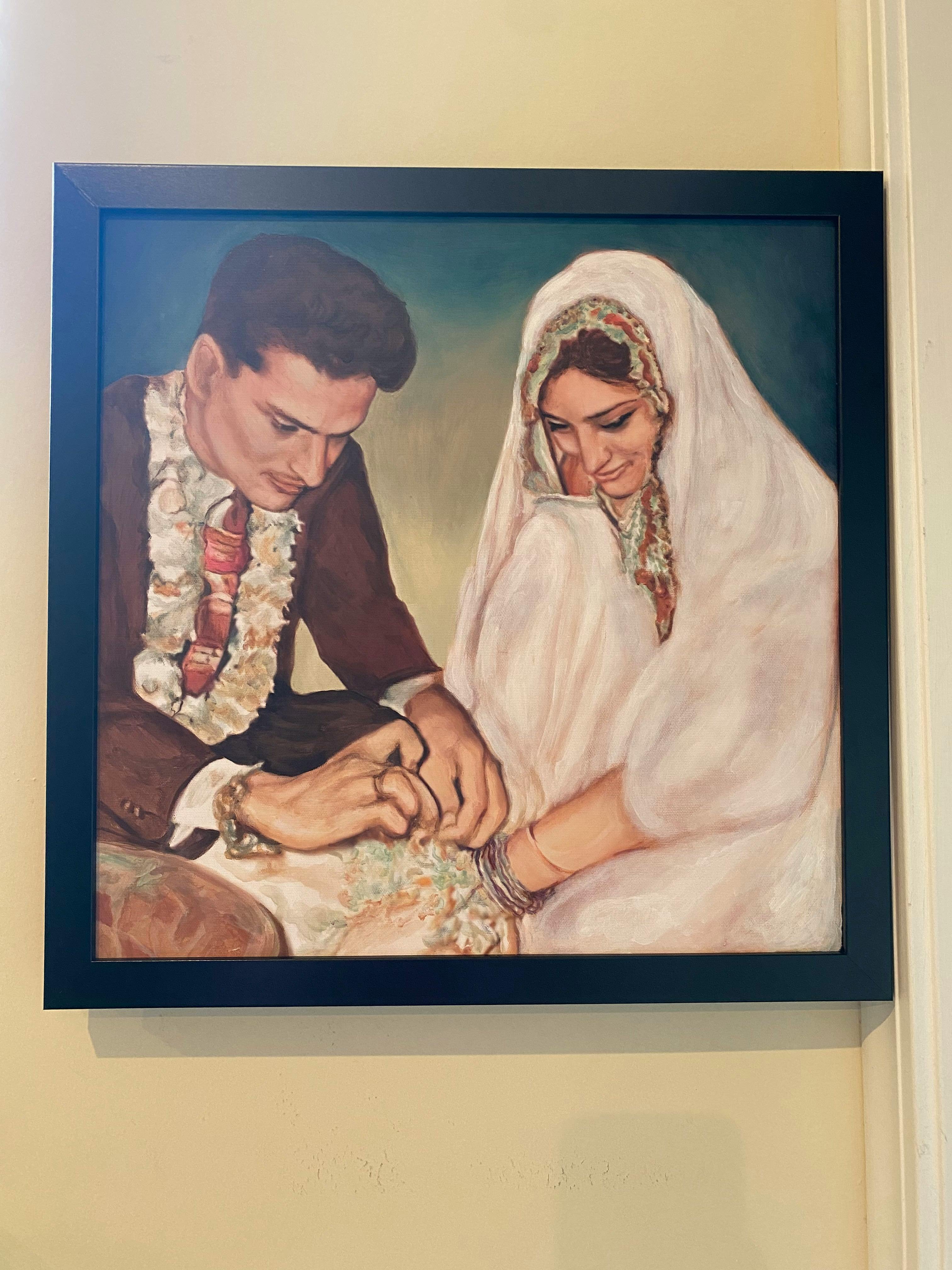 5/5 stars - This piece was exquisite and was the showstopper at the bridal shower for our Nephew. Details were captured better than I could have imagined. Our artist created this piece with a watercolor based oil paint as she had the common sense to take into account that traditional oil paint take months to fully dry. The previous painting I had ordered from a different artist used traditional oil paint and had already started to bleed out by the time it was delivered to my home. I will NEVER use anyone else for any future pieces.- Danielle from Cleveland