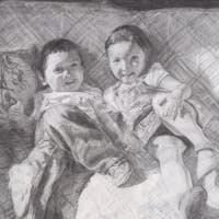 Working primarily in charcoal and pencil, she uses detail to evoke feelings of light, joy, peace, and connection.