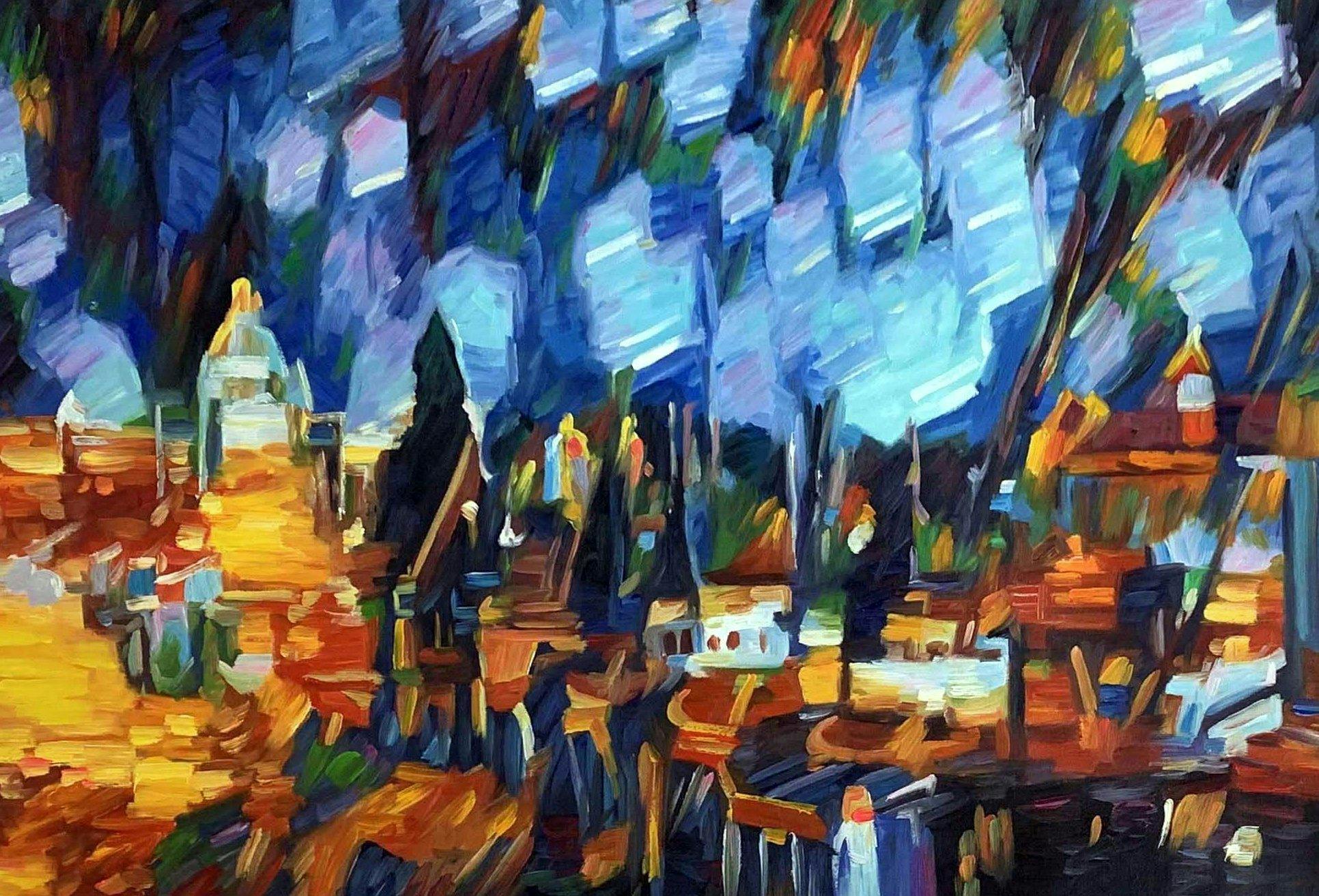 This order was painted in the style of Misty Mood by Leonid Afremov. Palette knife in oil.