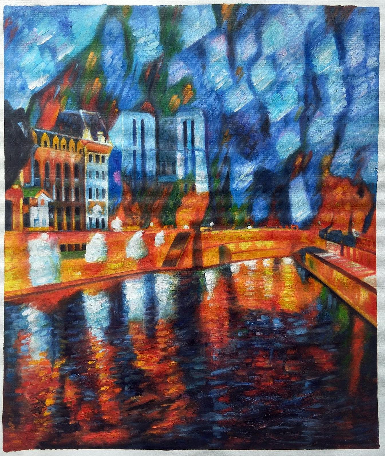 This order was painted in the style of Misty Mood by Leonid Afremov. Palette knife in oil.