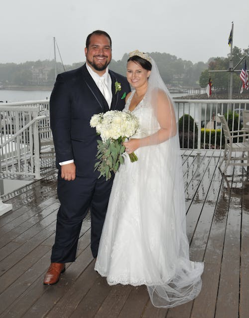 03/27/2018It would be wonderful if we could take out the railing from the background of the photo and just have them on the deck (with more of the lake showing than the deck). Would that be possible? Can we also make sure that string of bangs across her forehead is uniform with the rest of the hair? I don't want that in the portrait. Thanks