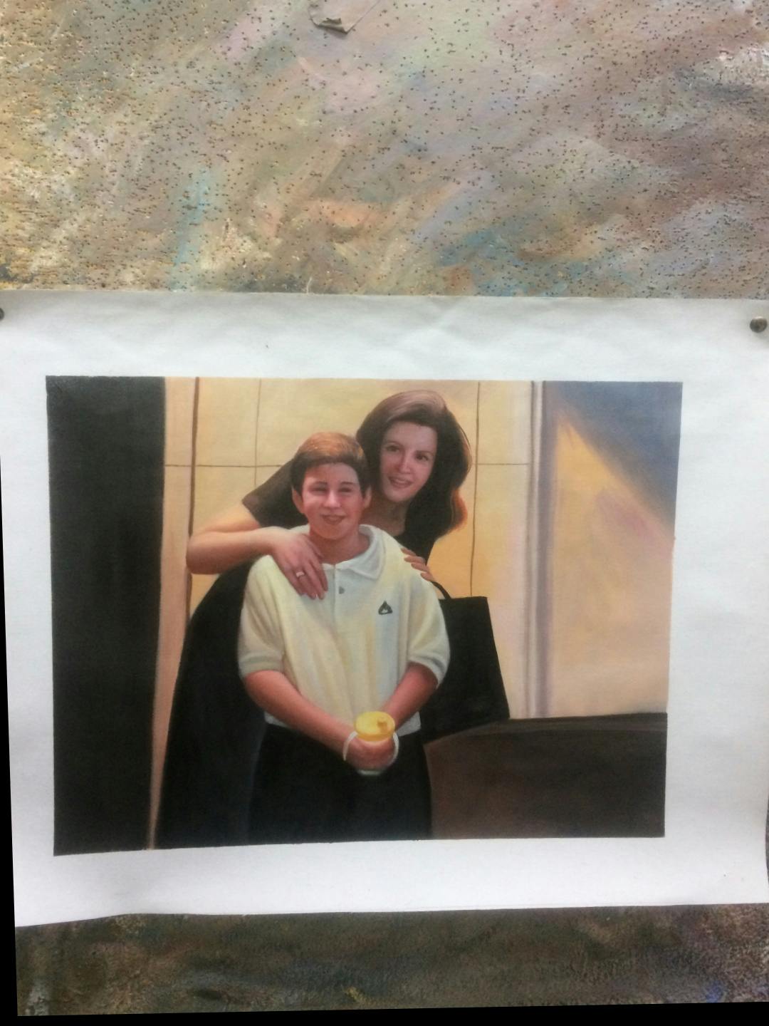 Hey! I'm wondering if you can paint the boy on the right (yellow shirt) in place of the boy on the left (white shirt), as if the woman were holding the boy in yellow shirt, not the white. And make it so it is a painting of two people, not three. Thanks!
