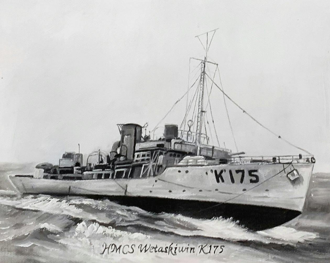 Please include on the bottom of the painting "HMCS Wetaskiwin K175", and feel free to sign the artists name. also please paint in an 8" X 10" landscape page layout (horizontal), as opposed to a vertical length painting. Thank you!