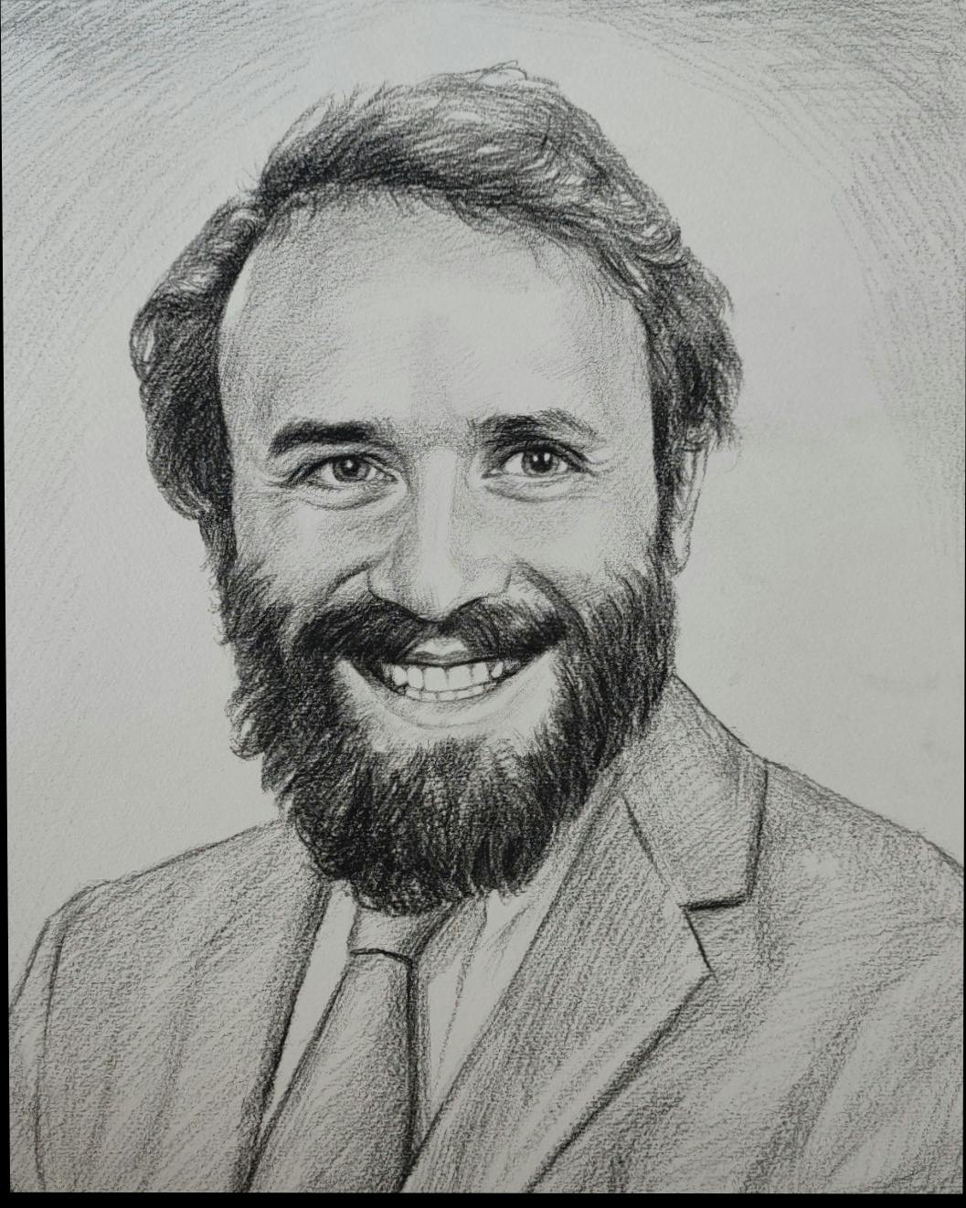 She did the best she could given the crazy-poor quality photo they had to work with. I was eventually able to find a better one and the follow-up version to this is now our favorite of the four headshots she drew for us!