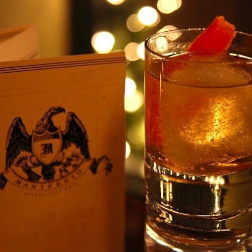 Hello. I took this photo right before my wife and I's very first kiss. This was her drink called "A Lovely Red Bell" (it has a red pepper in it). The bar with the eagle logo is perhaps Kansas City's coolest place (I was trying to impress her).