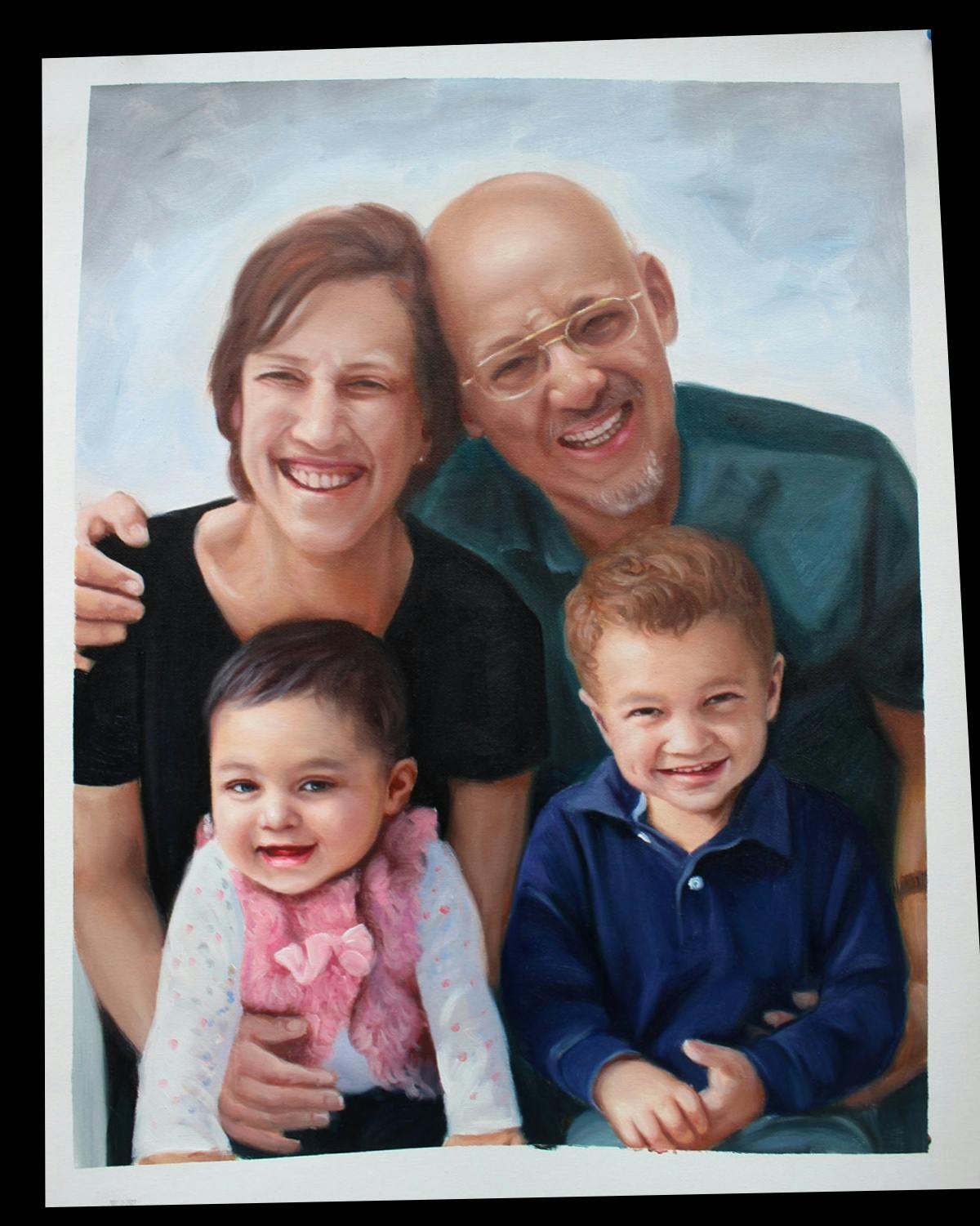 We would like to have the two grandparents in the one picture painted with the two grandkids in the other. Essentially combine the 2 pics into one.
