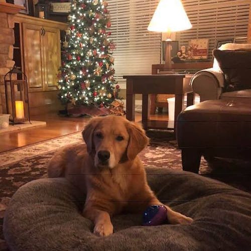 Please cancel out the Christmas tree and make the dog the primary focal point