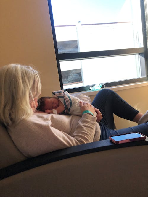 No background, just the woman holding the baby. You can get creative with the chair. Can be vertical or horizontal, whichever you think is best.