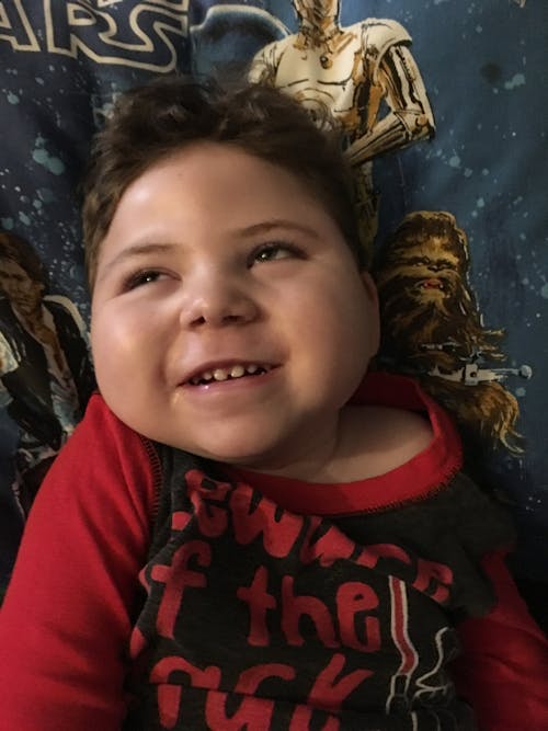 I'd like to lose the Star Wars details from the pillow and just have him sitting on a plain pillow and have the t-shirt words removed. You painted my son in July 2018 as a present for my wife. My son died earlier this year and I'd like to have this new painting to pair with the one we already treasure.