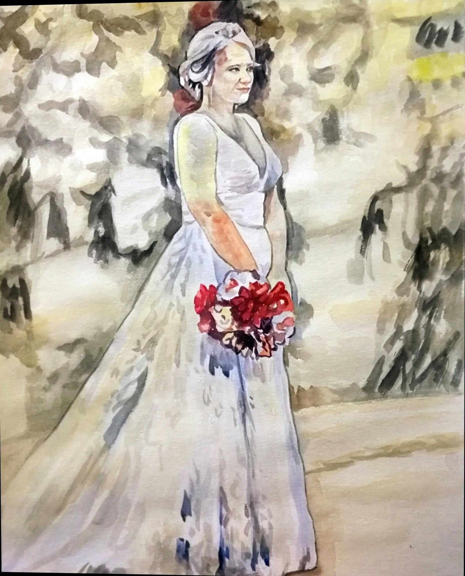 Lovely portrait displayed at wedding reception. Nicely framed. Good communication with artist.