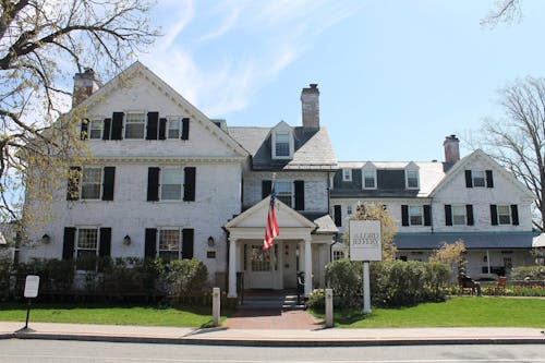 Please remove the parking/street sign in the lower left. Please also feel free to add some green/more color to the trees, so it looks like spring or summer.