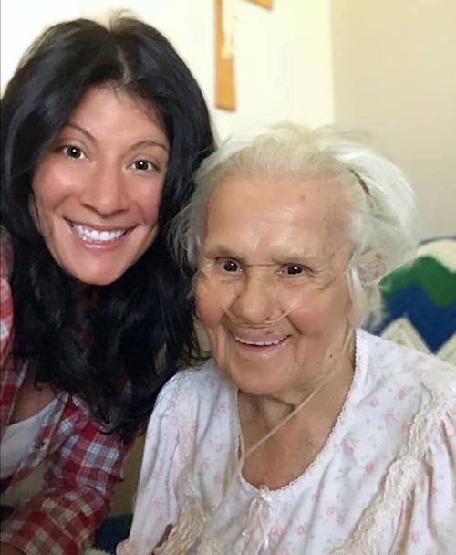 This is the last picture of her Grandmother before she passed away a few months back. I would like to have her with the oxygen tubes removed and a pretty shirt on her and not her healthcare top. Also whatever background that works with the picture. I would like to keep as much of the face integrity.
