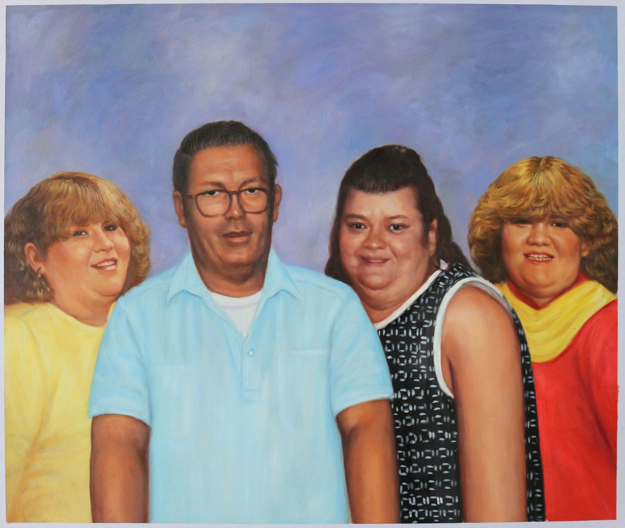 08/30/2020In the first photo I want just the woman on the back left in the white shirt and the woman on the back right in the red shirt. In the last photo I want only the man in the blue shirt with glasses on but can you remove his eyeglass case from his shirt pocket. I would like all 4 in a family photo style pose please.