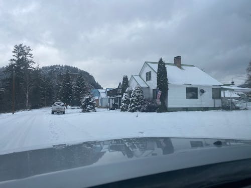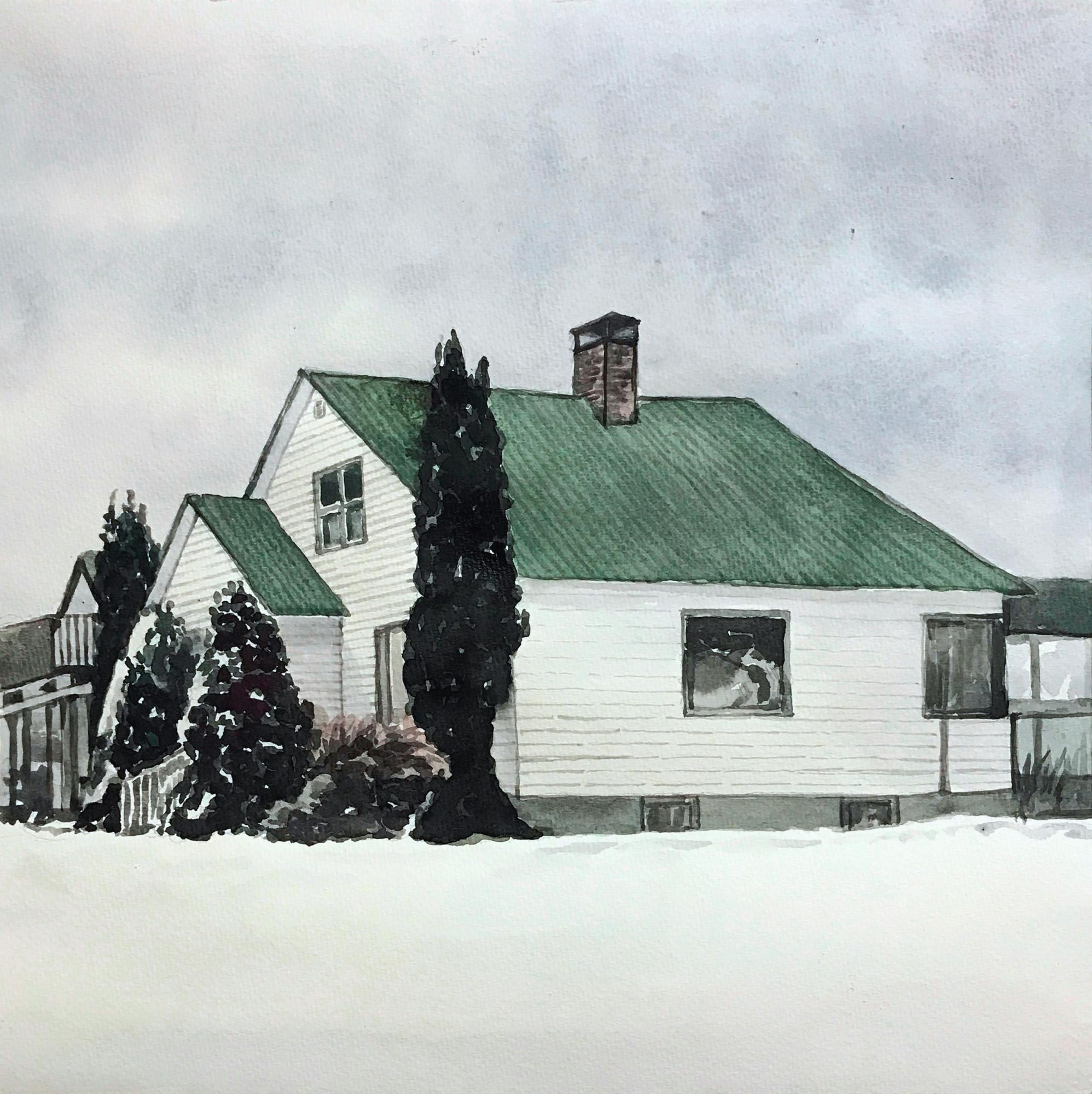 Please remove the truck, the Flag, and the Satellite dish. Please some more evergreen trees down the left side of the road. I would like the setting to be summer if possible with rose bushes up the front walk. The houses in the back can be more blurred. There is not currently a sidewalk but one can be added if that looks better. Lastly, this is my wife’s Grandparents home. She loved them dearly. They were magic to her. My wife loves vintage style if that helps. Please don’t hesitate to ask questions. Thank you so very much