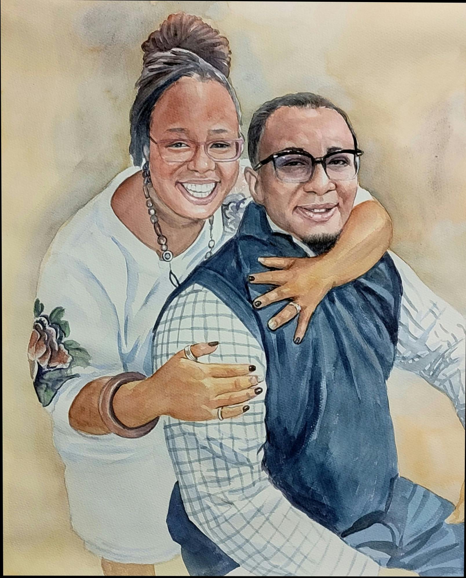 I would like this to be a 16x20 painting vertically and center in on the woman and man. This is a photo of my best friend who just lost his 33yo daughter in a car accident and I want to give this to him. I would like the background to be blurred out so that the two people are the main focus.