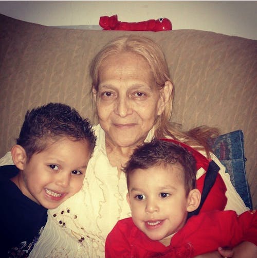 Replace background please. She is my bestfriend grandma and she was really sick in this photo, if you can help her look less tired.