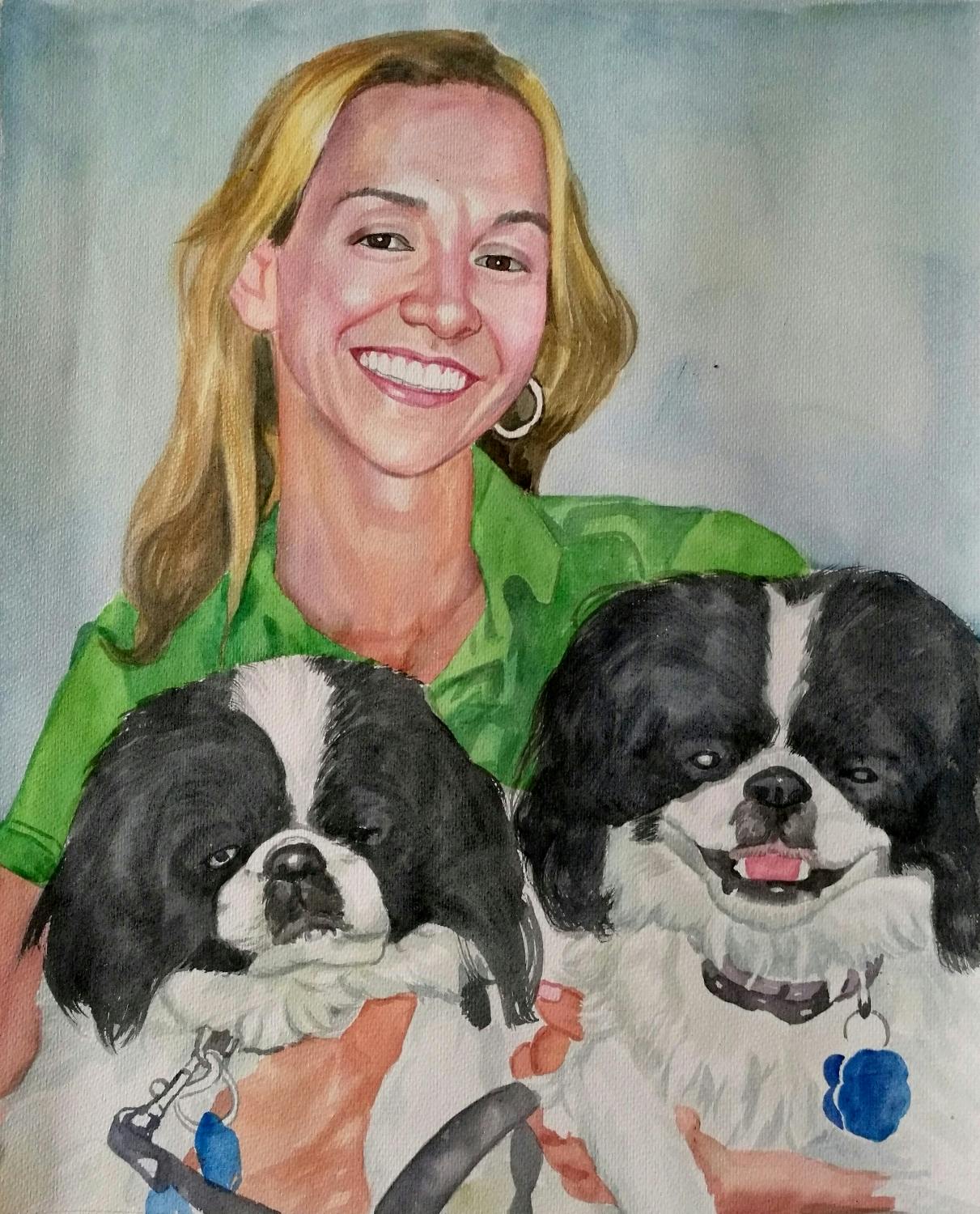 Artist did a great job capturing my wife and our two dogs. She loves the painting, and it serves as a great remembrance of our Japanese chins, who passed within two years of one another.