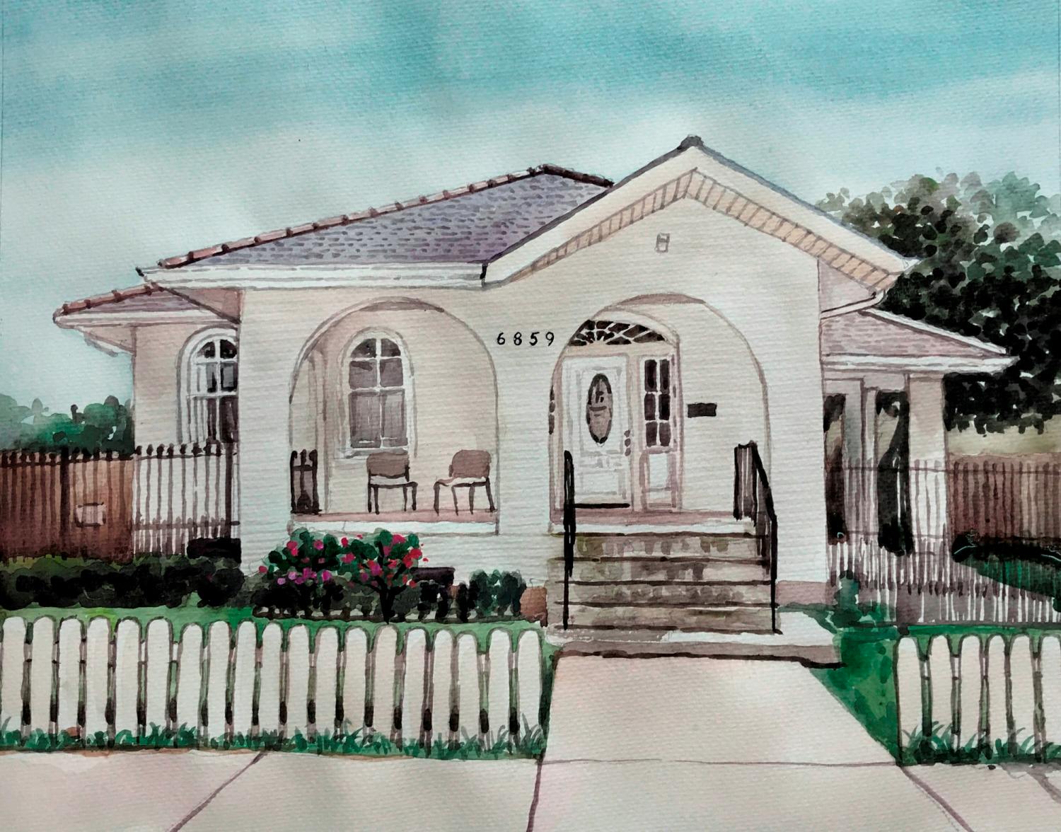 Leave out tree in the front yard. Add rosebushes in the front of the house and a white picket fence.