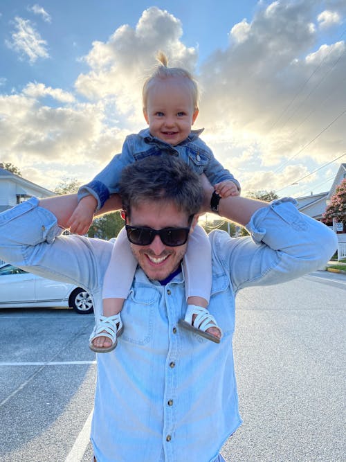 Could you please remove the car from the background and make it look like he's just walking on the beach? Also, could you please use colors that are close to the ones in the photo? for example, the sky is very blue with white clouds as the sun is coming through. Also with the blues in their shirts and white in her shoes.