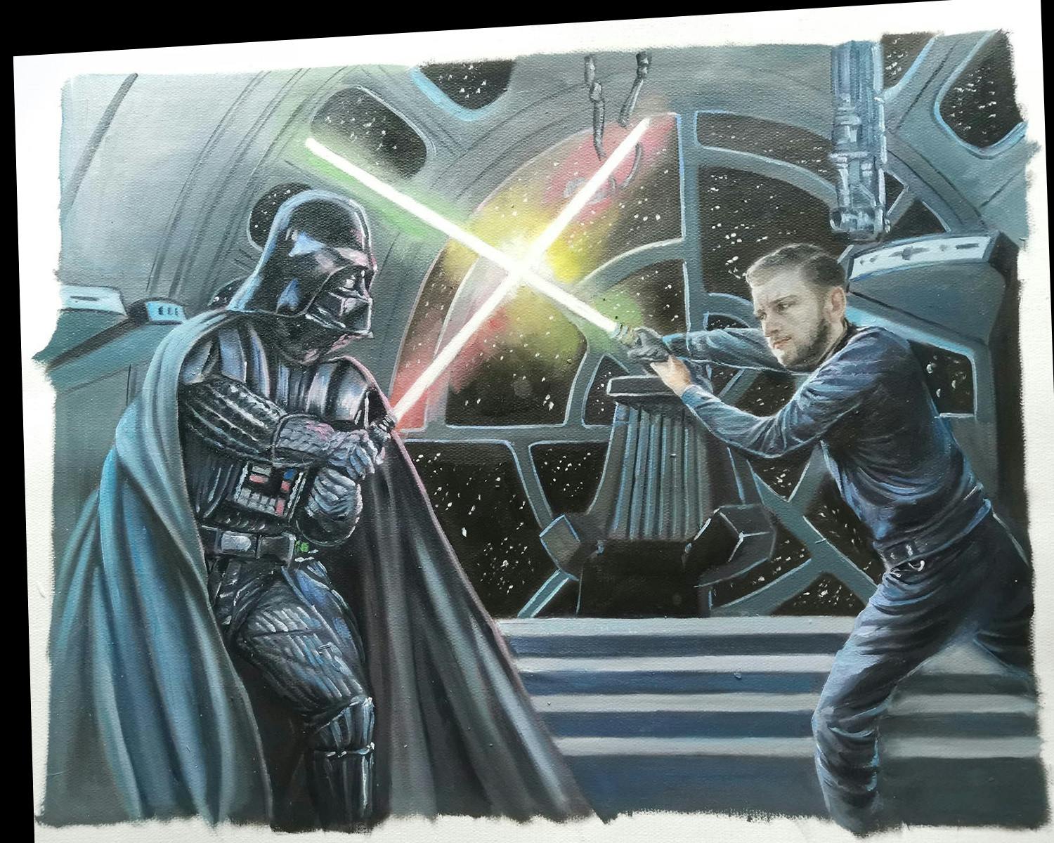 01/28/2021I don’t want Palpatine in the back. Replace Luke Skywalker with Jonathan who is in the second picture, so it can look like he’s fighting Darth Vader instead.