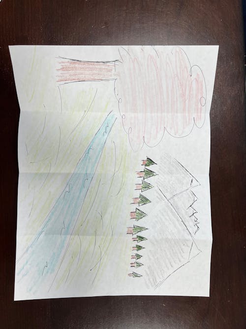 would like this painted at a much higher quality level. Its a vision that a non artist drew up just to get created in a better way. Picture it like laying under the red tree on the grass by the river with trees and snow cap mountains in the background.