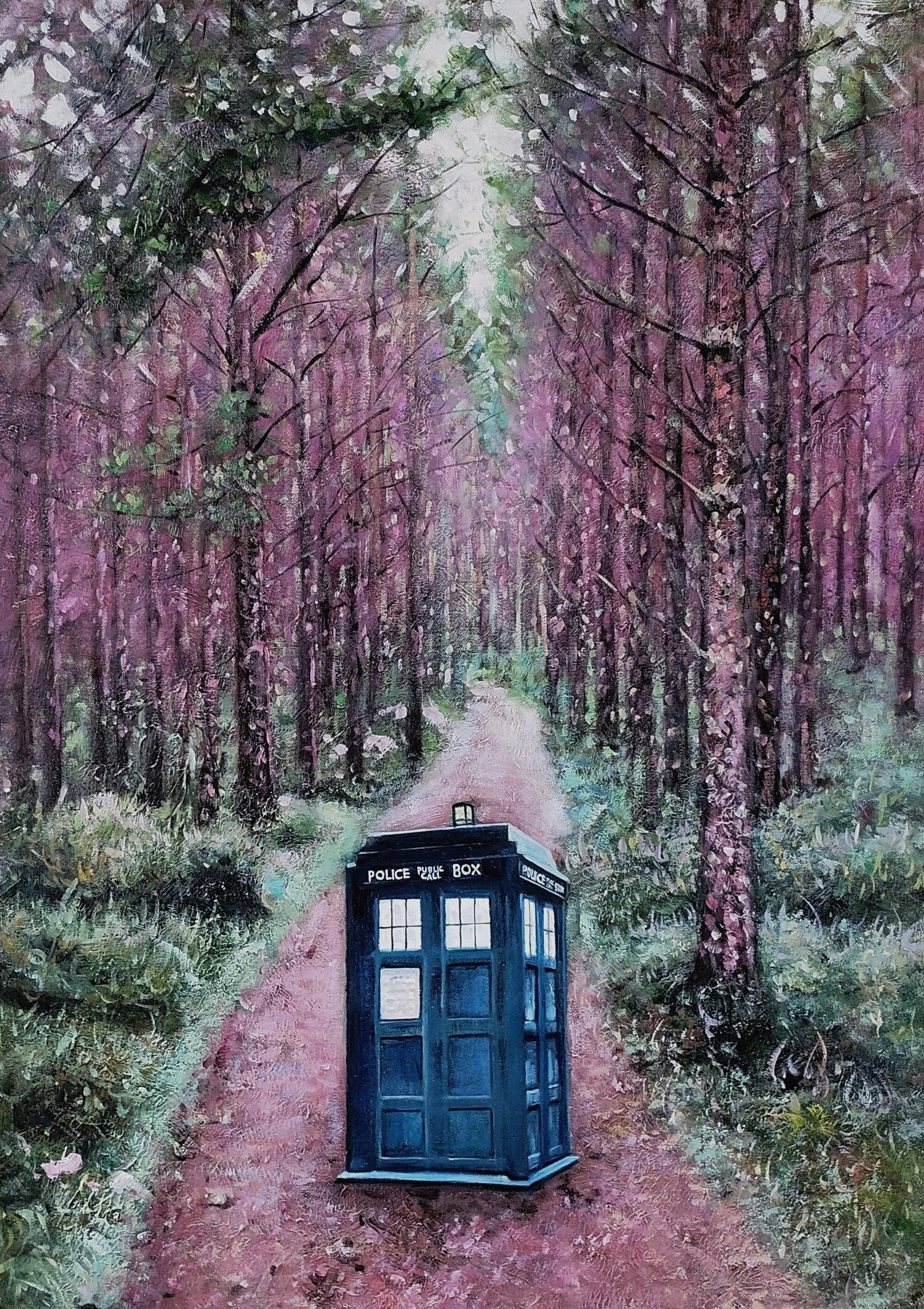 08/07/2022My girlfriend is a huge Dr.Who fan. I'd like the purple forest as the background. The three other pictures are a TARDIS from the show and just for reference. I'd like the TARDIS sitting on the path back among the trees. Thank you!