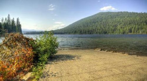 I would like to have the two people from the one photo painted just as they are, but painted into the background of the other photo as if they are standing on the shore with their backs to us facing the lake.