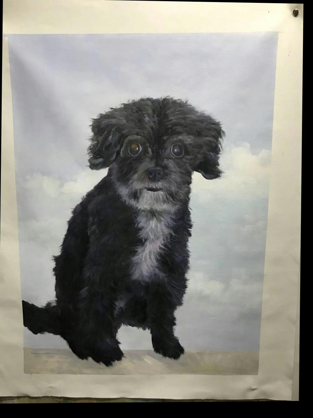 Hello! Please paint the pet realistically, however please replace the background, it does not need to be what is in the picture. Maybe something resembling a light blue sky with clouds would be best. Thank you!
