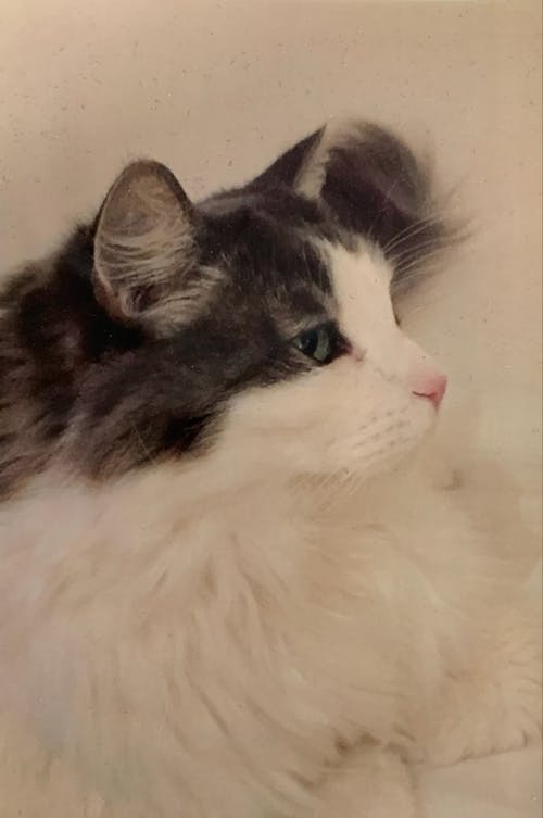 Please remove the bit of tail next to the cats face (the dark part in front of his left ear)
