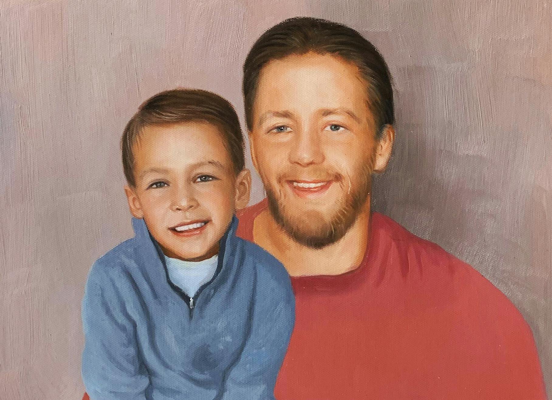 Can you have my son sitting with his grandfather so it looks like their together? Without the cat please