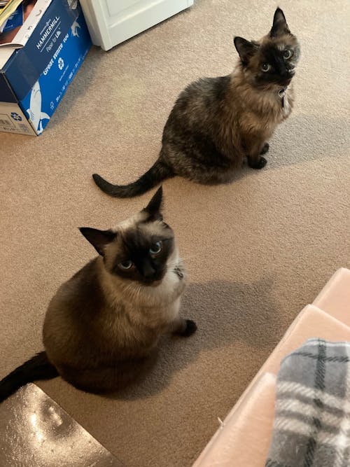 Can you remove the image of the box in the upper left hand corner of the photo, and just make it appear as the tan rug instead. Can you also remove the image of the clear floor matt at the bottom left hand corner of the photo. Can you also extend the image of the blanket so that it appears to drape over the beige colored steps and have it end just before the beginning of the cat's shadow in the lower right had corner of the photo. Almost making that blanket pattern look like a cozy resting spot instead at that corner of the image.